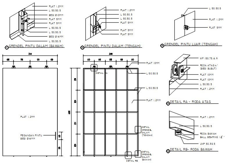 Inner door and exterior door latch details design in AutoCAD 2D drawing. Top and bottom wheel details are given. For more knowledge and detailed information download the 2D AutoCAD dwg file.