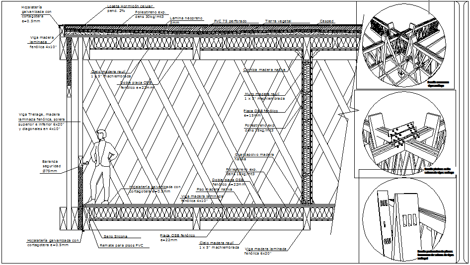 Structure Detail of wooden beam dwg file with view of wooden beam detail and detail