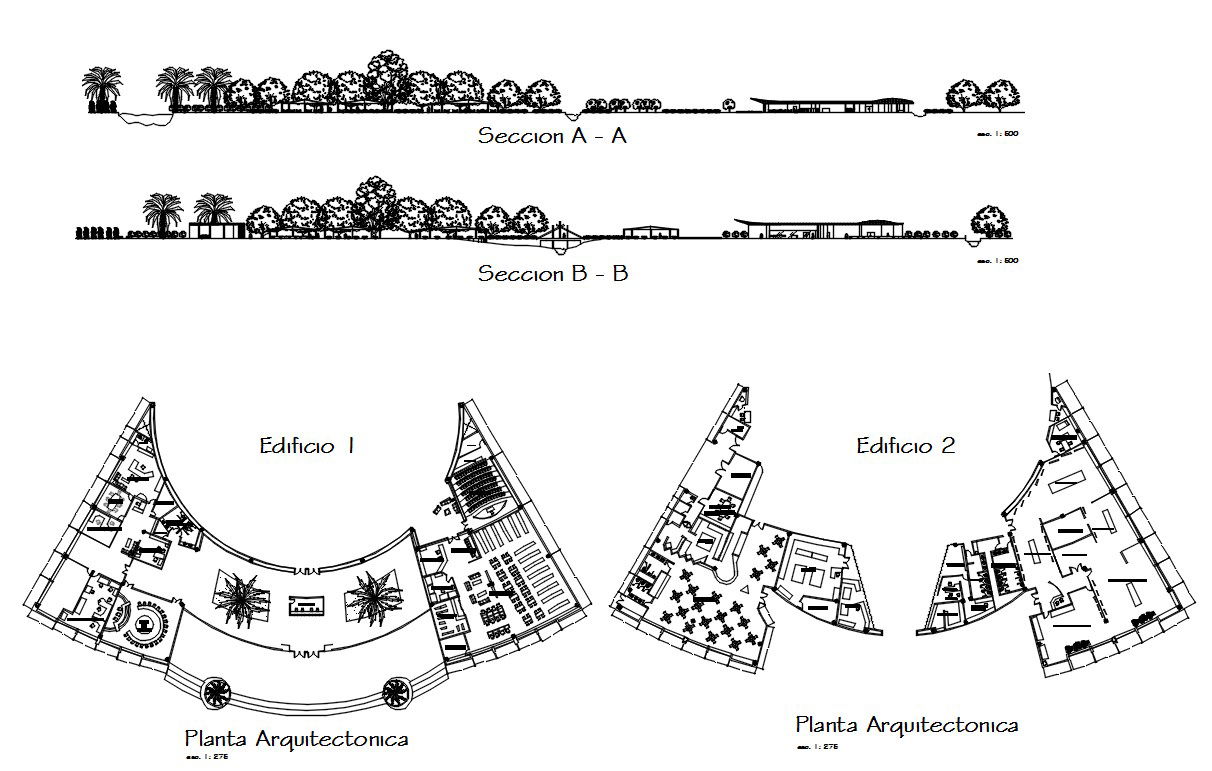 Architectural plan of the resort in AutoCAD 2D drawing. There were two different plans of the resort, sections A-A and section B-B of the resort are designed in this file. For more detailed knowledge and information download the 2D AutoCAD file.