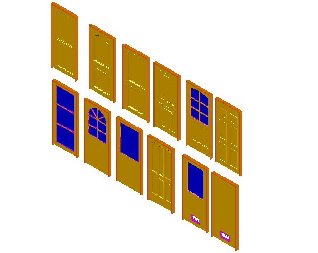 like a rectangular and circular shaped design with view of wooden frame in Different model view of door in 3d.
