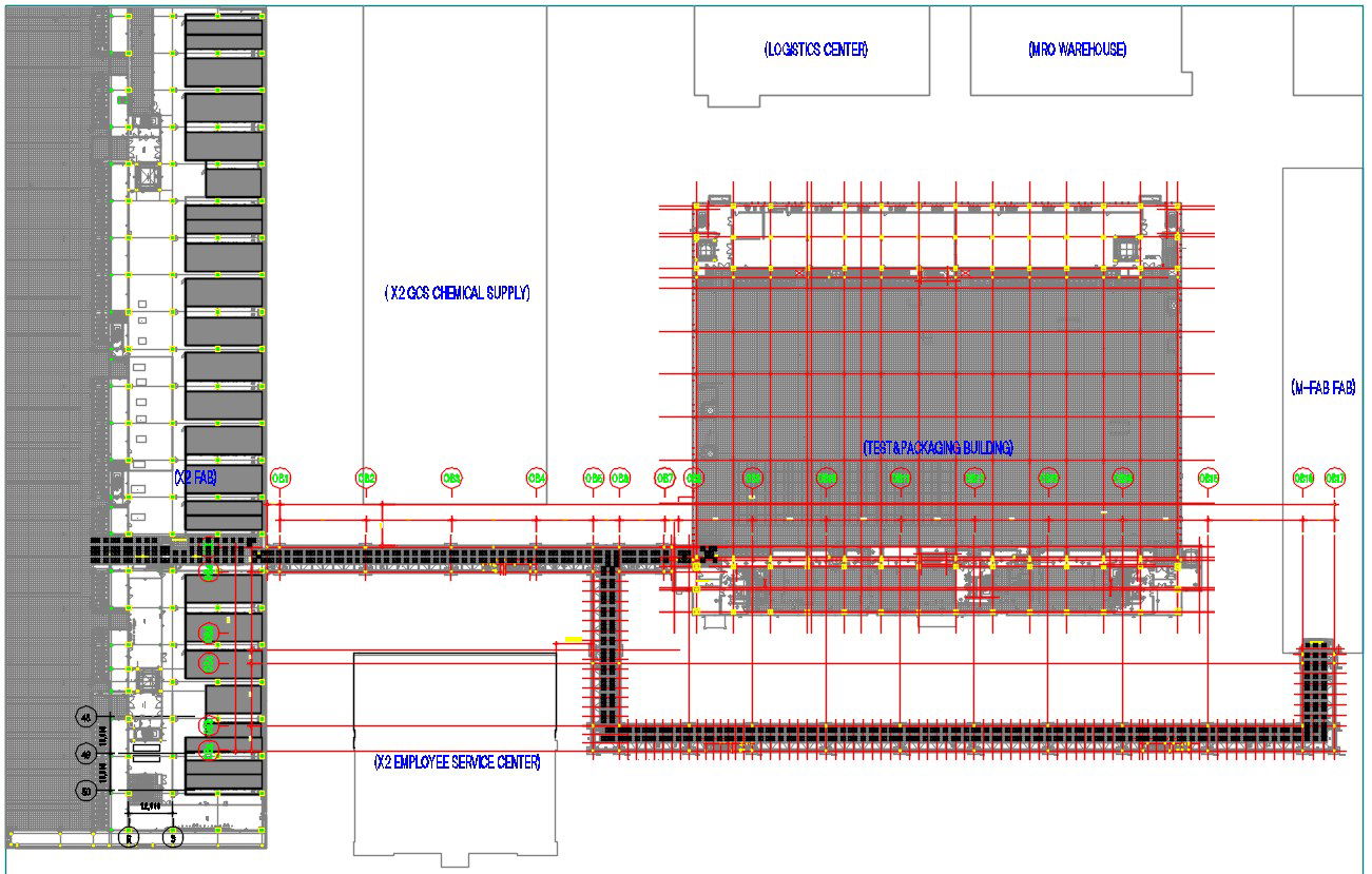 2D layout plan of the industrial plant in AutoCAD drawing. logistics center, warehouse, chemical supply area, test and packaging building, employee service center, and other detailed information are given in this plan. For more detailed knowledge and information download the 2D AutoCAD file.