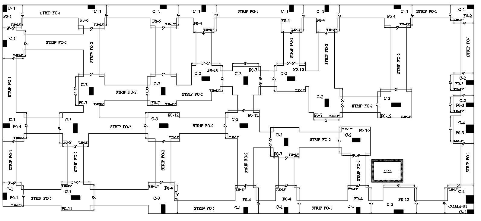 Foundation and column layout plan of the house in AutoCAD 2D drawing. There was a strip foundation given in this plan. For more detailed knowledge and information download the 2D AutoCAD file.