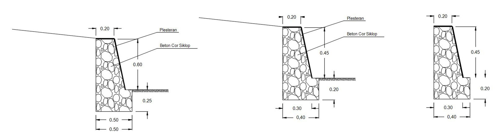 2D design of a gravity retaining wall structure in AutoCAD drawing. Gravity retaining walls are those that rely on their own weight to withstand lateral ground forces. Vertical pressures from the weight of the wall, lateral earth pressure pushing on the rear face, and seismic loads are the principal forces acting on gravity retaining walls. For more detailed knowledge and information download the 2D AutoCAD file.