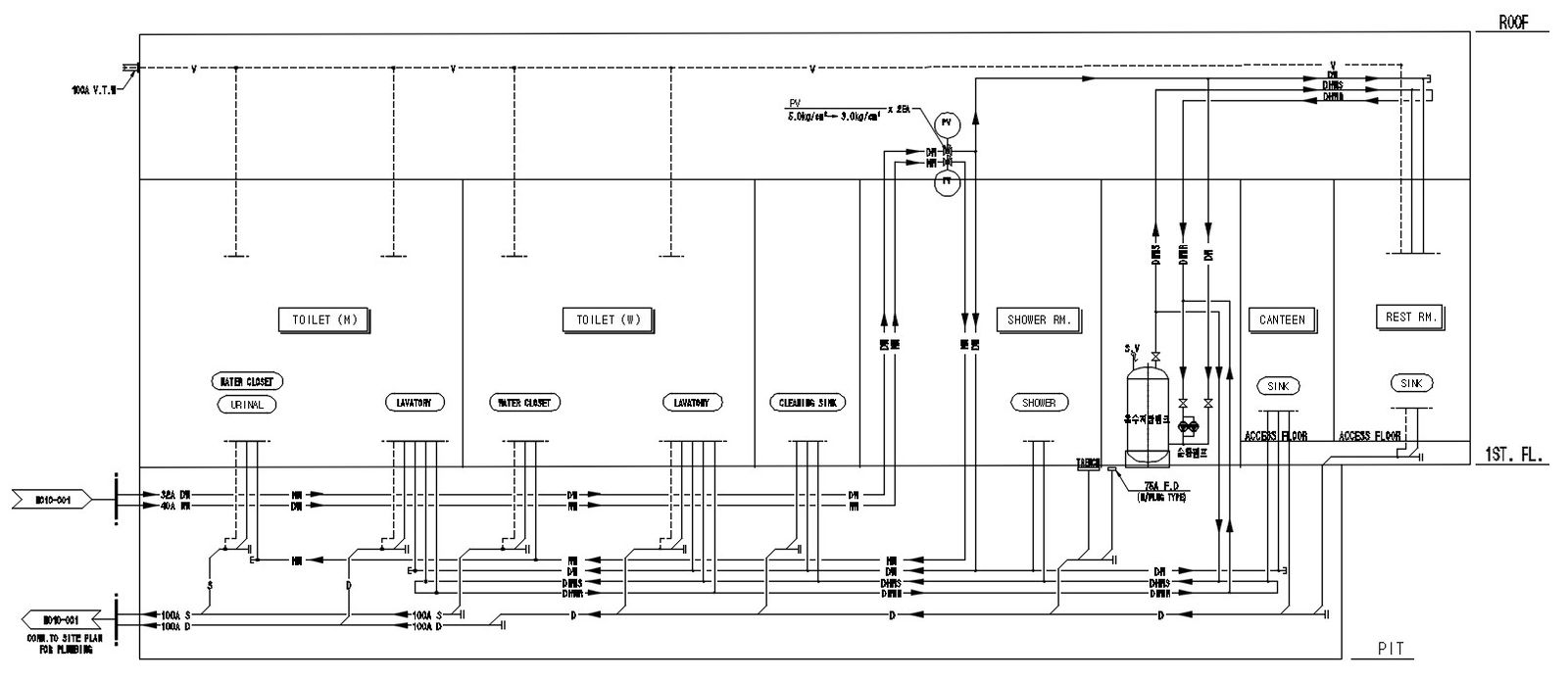 Drainage system of public toilet detailed design in AutoCAD 2D drawing, CAD file, dwg file