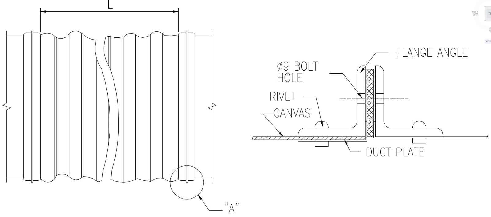 2D design of the structural component in AutoCAD drawing. There were duct plate, canvas, flanged angle, rivet, 9mm dia. bolt hole, and other detailed information are given in this design. For more knowledge and detailed information download the AutoCAD 2D dwg file.