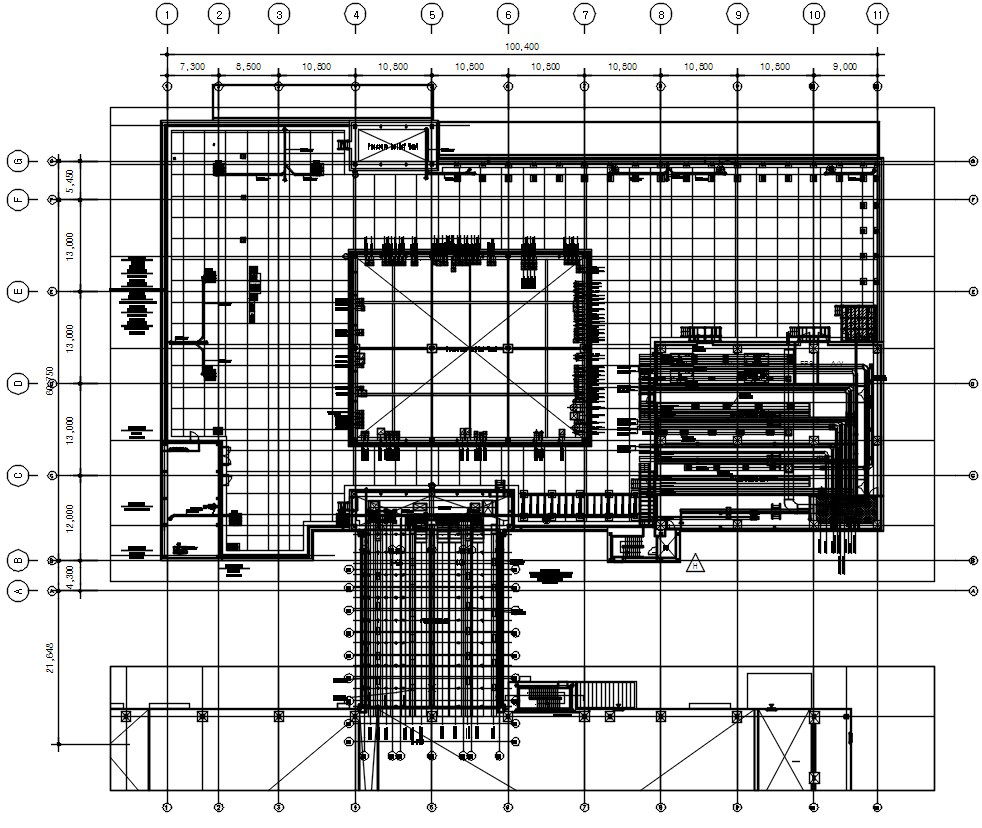 Roof plan details of the industrial plant in AutoCAD 2D drawing, CAD file, dwg file