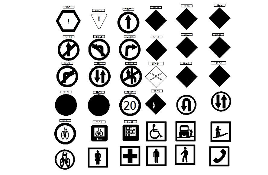 Different symbols CAD blocks are designed in AutoCAD 2D drawing. Since preventing accidents and protecting people on the road is the main goal of traffic signs, it is essential that they be clearly placed to command attention and placed so that vehicles have adequate time to obey each sign's command. For more details and different types of CAD blocks download the AutoCAD dwg file.