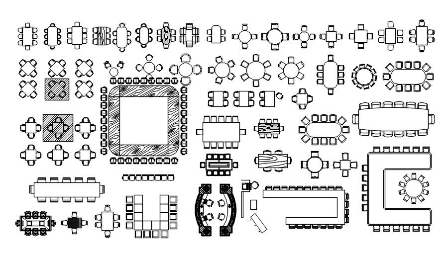 Various designs of Meeting tables and dining tables in AutoCAD 2D drawing, CAD file, dwg file
