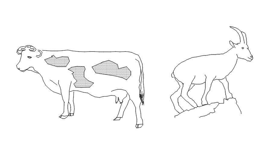 2D design of cow and goat in AutoCAD drawing. For more details and different CAD blocks download the AutoCAD dwg file.