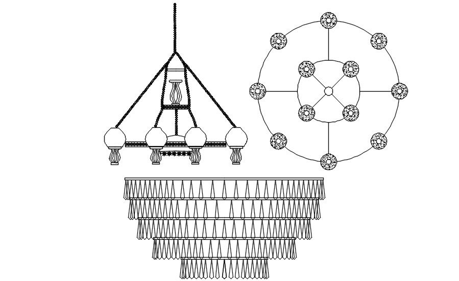 Various chandelier CAD blocks in AutoCAD DWG format with detailed layouts, dimensions, and design variations. Ideal for interior designers, architects, and 3D visualization projects to accurately plan lighting fixtures in residential, commercial, and hospitality spaces. Each block is editable for precise design integration.