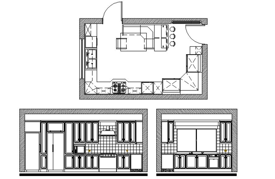 Plan and section design of the kitchen in AutoCAD 2D drawing, CAD file, dwg file