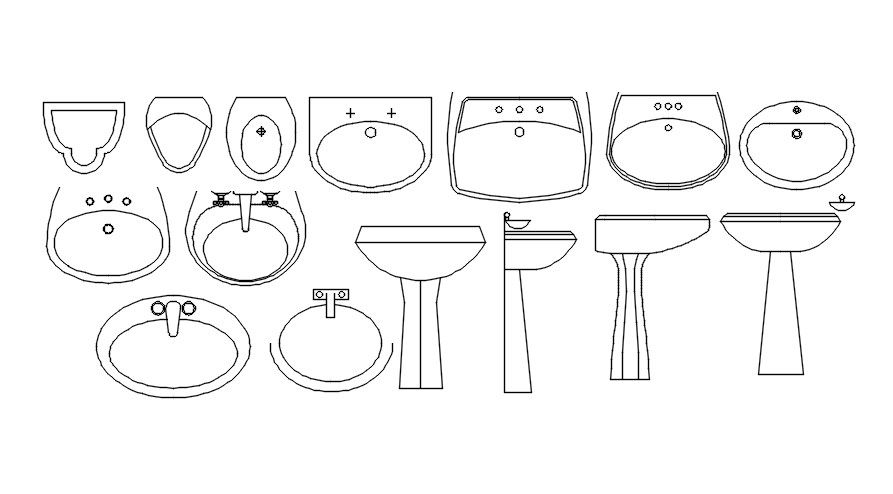2D designs of various washbasin CAD blocks are given in AutoCAD drawing. For more details and different CAD blocks download the AutoCAD dwg file.