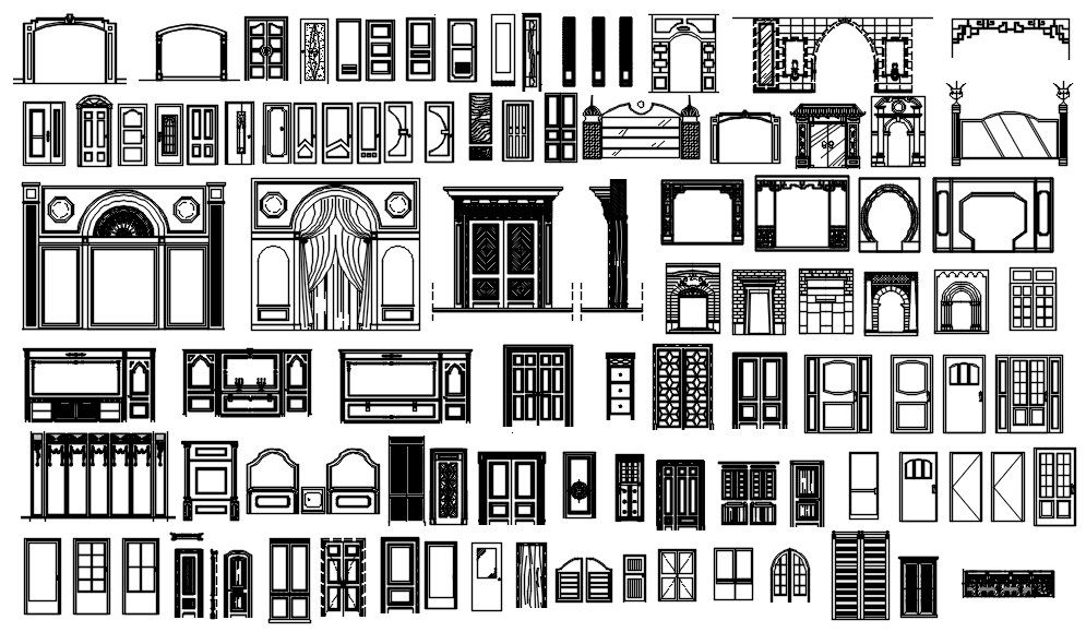 Various patterns of door design CAD blocks in AutoCAD 2D drawing, CAD file, dwg file