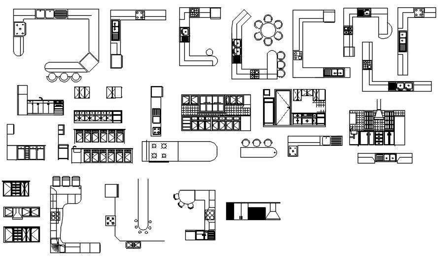 Kitchen platform and furniture design CAD blocks in AutoCAD 2D drawing, CAD file, dwg file