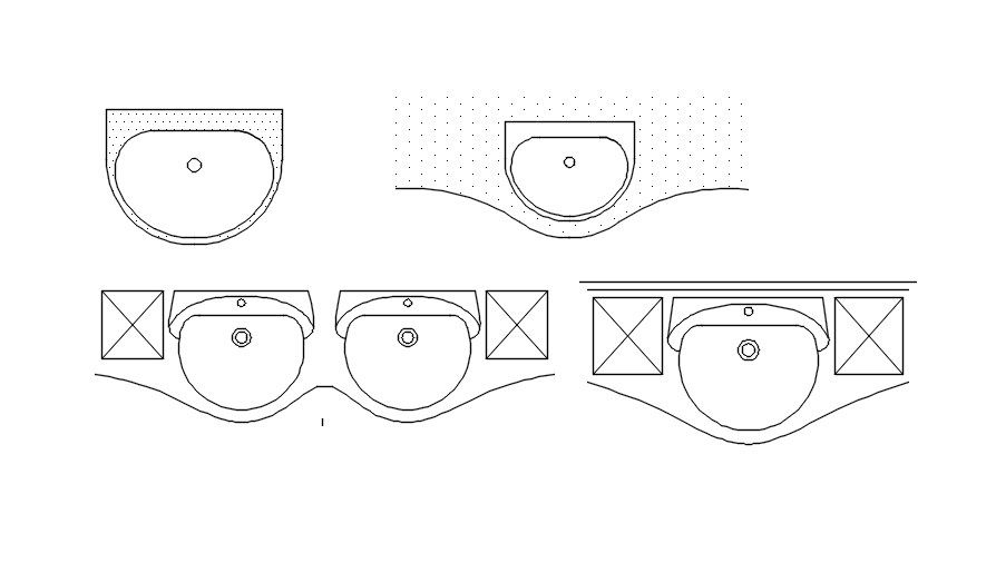 2D CAD blocks of Different designs of washbasin in AutoCAD drawing, CAD file, dwg file