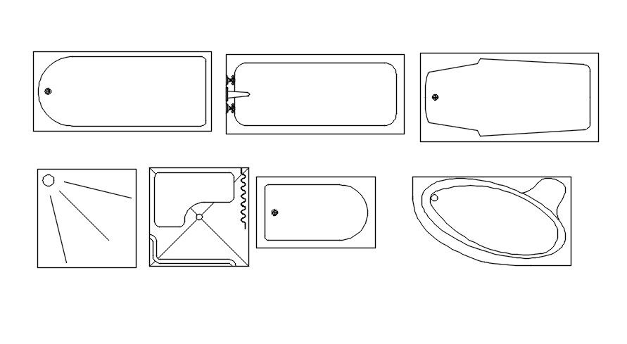 Different designs of washbasin and bathtub CAD blocks are given in AutoCAD 2D drawing. For more details and different CAD blocks download the AutoCAD dwg file.