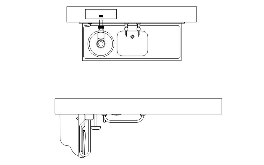 2D design of washbasin and its plumbing details in AutoCAD drawing, CAD file, dwg file