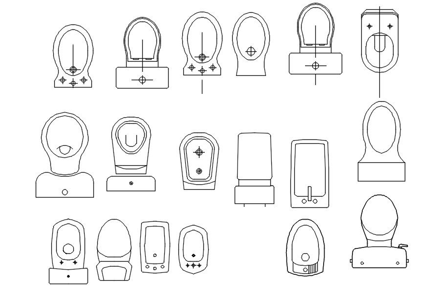 AutoCAD 2D drawing of different designs of toilet CAD blocks. For more details and different CAD blocks download the AutoCAD dwg file.