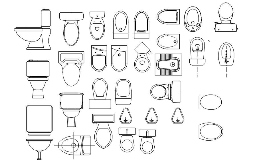 AutoCAD 2D drawing of different types of toilet CAD blocks, CAD file, dwg file