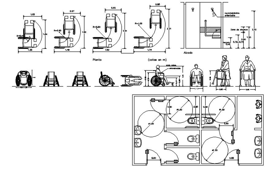 AutoCAD 2D drawing of Walking Equipment for Disabled CAD blocks. For more details and different CAD blocks download the AutoCAD dwg file.