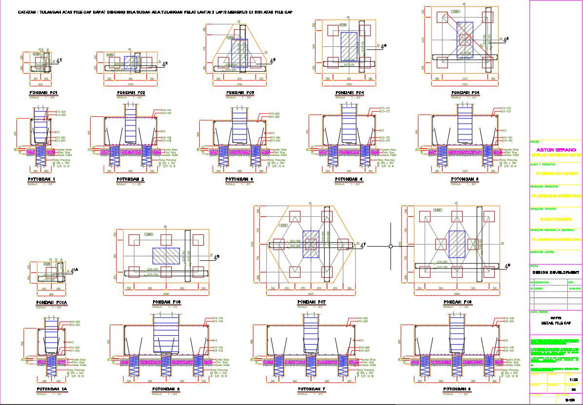 Different sections design with pile cap details in AutoCAD 2D drawing, CAD file, dwg file