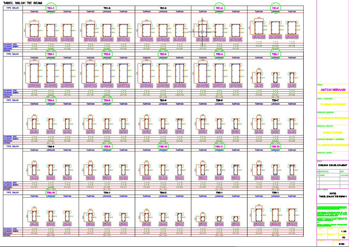 TIE BEAM TABLE 1 design in AutoCAD 2D drawing, CAD file, dwg file
