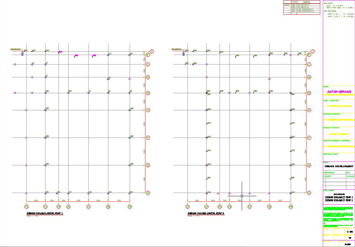 Column plan of roof floor 1&2 design in AutoCAD 2D drawing, CAD file, dwg file