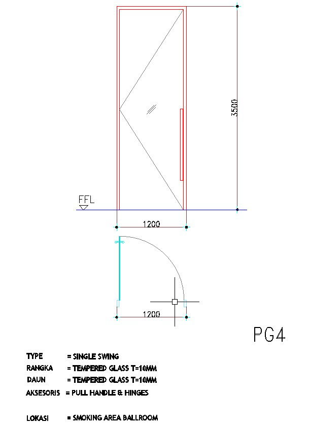 A single swing door design is given in the AutoCAD drawing. The size of the door is 1200×3500 given. For more details and information download the AutoCAD drawing file.