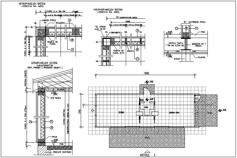 Structure Detail of wooden element dwg file with view of wooden panel,I beam view