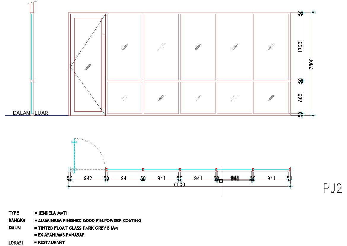 The single swing door section and elevation design is given in the AutoCAD drawing. The size of the door is 942×2800 given. It is located at a restaurant. For more details and information download the AutoCAD drawing file.