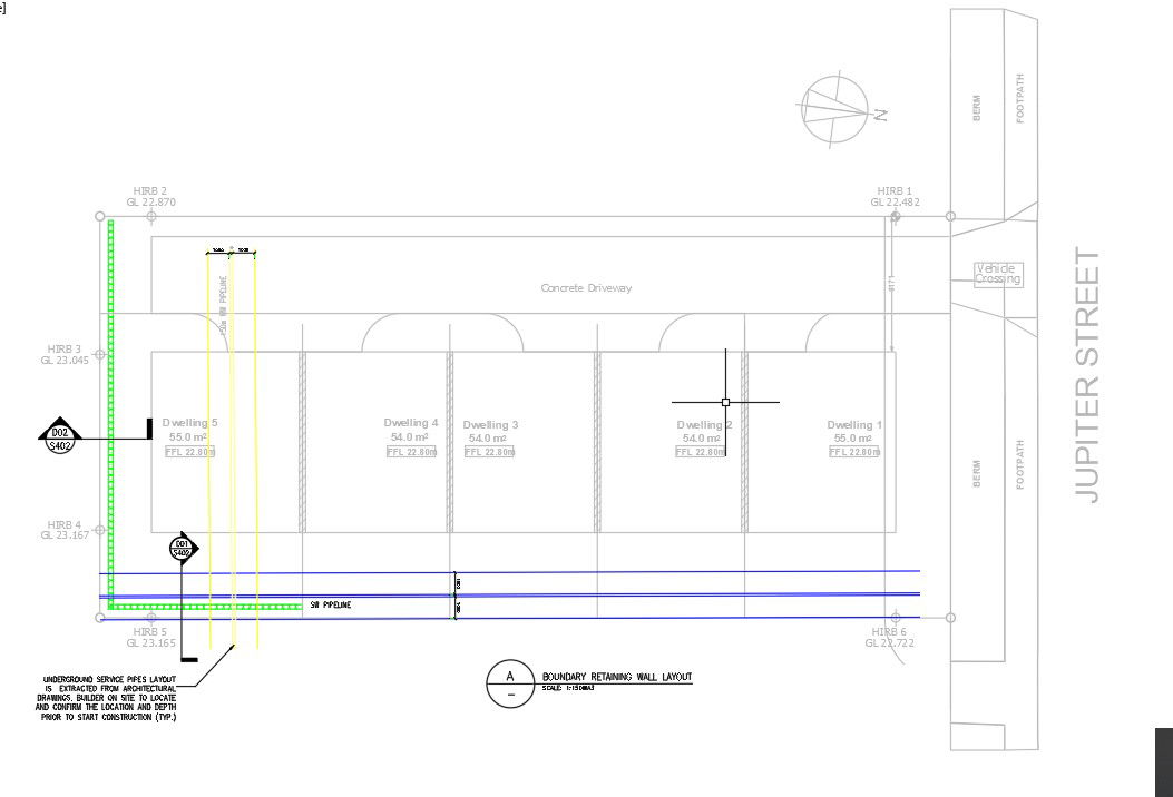 The boundary retaining wall layout plan design is given in the AutoCAD 2D drawing. A retaining wall is a structure built to resist the lateral pressure of soil. Soil can be held at various levels on the two sides, and retaining walls are used to support soil laterally. For more knowledge and detailed information download the AutoCAD 2D dwg file.