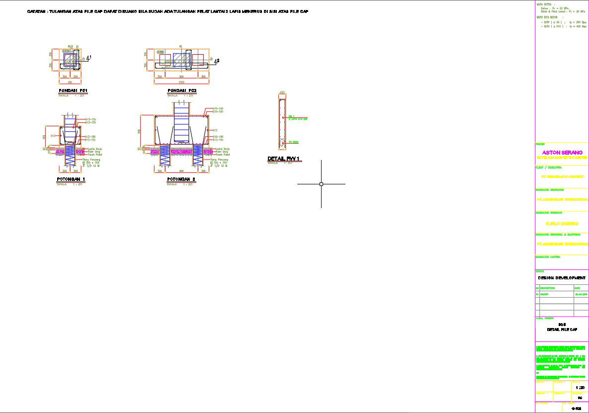 Detailed design of foundation pile cap in AutoCAD 2D drawing, CAD file, dwg file