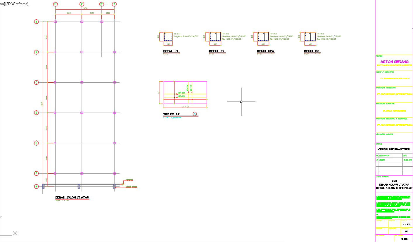 The column layout plan of the roof floor design is given in the AutoCAD 2D drawing. There were K1, K2, K2A, and K3 of the column sections are also designed in this file. reinforcement details are specified. For more knowledge and detailed information download the AutoCAD 2D dwg file.
