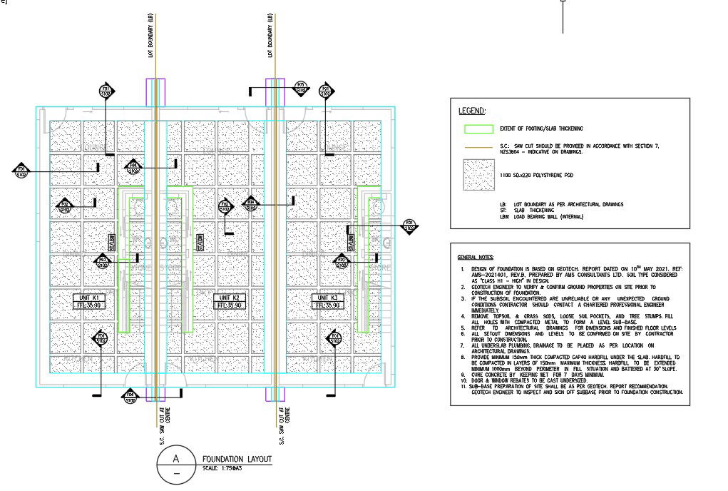 Detailed design of the foundation layout plan of the house is given in AutoCAD 2D drawing. The foundation plan is a section plan view drawing that shows the location and size of footings, piers, columns, foundation walls, and supporting beams. The foundation plan is created using the information presented on the floor plan, plot plan, and elevation plan drawings. For more knowledge and detailed information download the AutoCAD 2D dwg file.