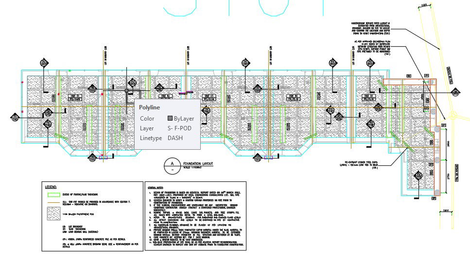 Foundation layout plan of the row house design in AutoCAD 2D drawing, CAD file, dwg file