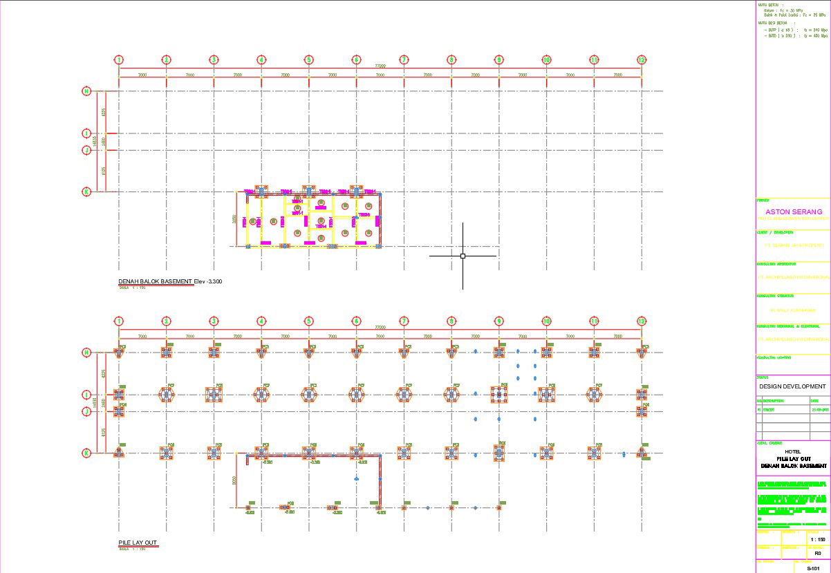 The beam layout plan of the basement and pile layout plan design of the hotel is given in AutoCAD 2D drawing. For more knowledge and detailed information download the AutoCAD 2D dwg file.