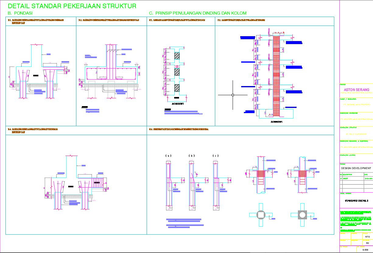 Standard details of column and foundation reinforcement design in AutoCAD 2D drawing, CAD file, dwg file