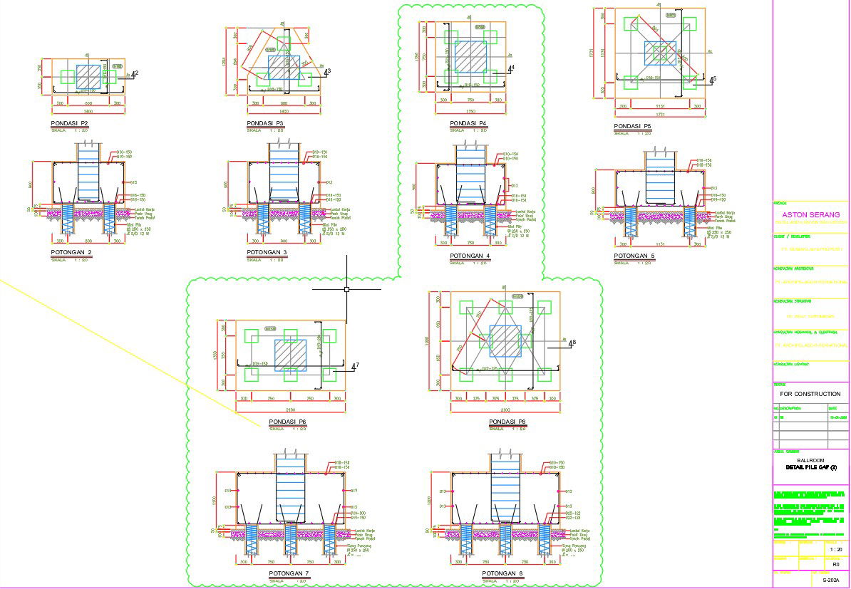 Pile cap detail section designs are given in AutoCAD 2D drawing, CAD file, dwg file