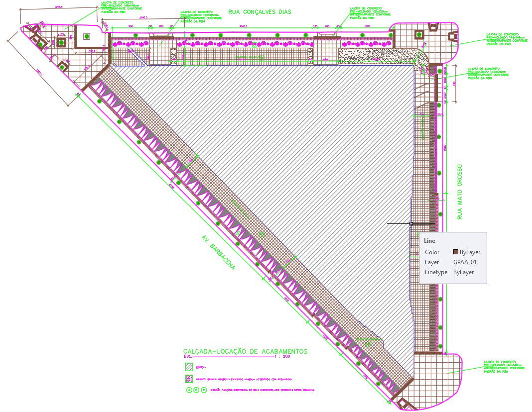 Detailed layout plan of side walk in AutoCAD 2D drawing, CAD file, dwg file
