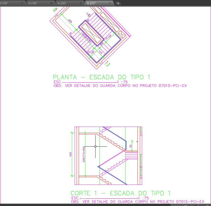 Detailed design of plan and section design of the staircase in AutoCAD 2D drawing, CAD file, dwg file
