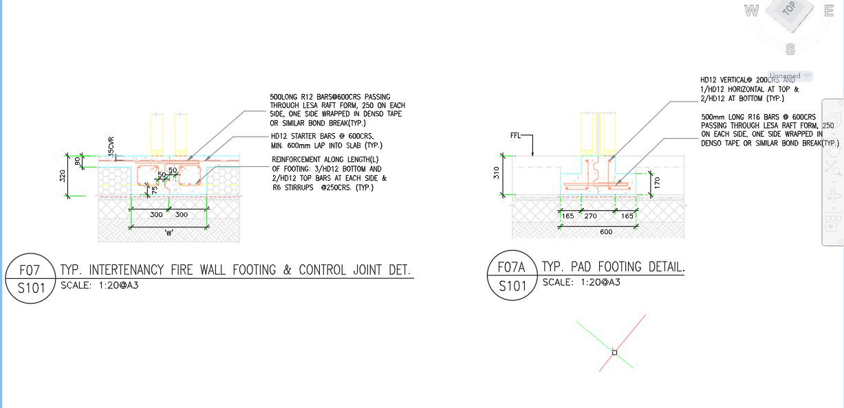Detailed designs of different structure sections are given in AutoCAD 2D drawing. There were typical intertenancy fire wall footing and control joint detail, and typical pad footing detail designs are given in this file. For more knowledge and detailed information download the AutoCAD 2D dwg file.