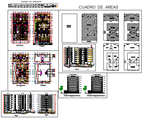 Project of multi family architectural floors design drawing