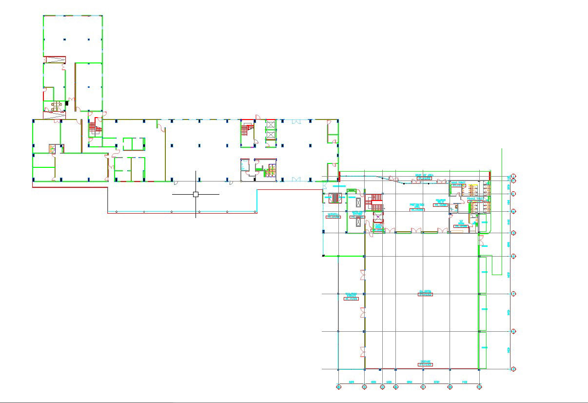Column layout plan of the first floor of commercial building in AutoCAD 2D drawing, CAD file, dwg file