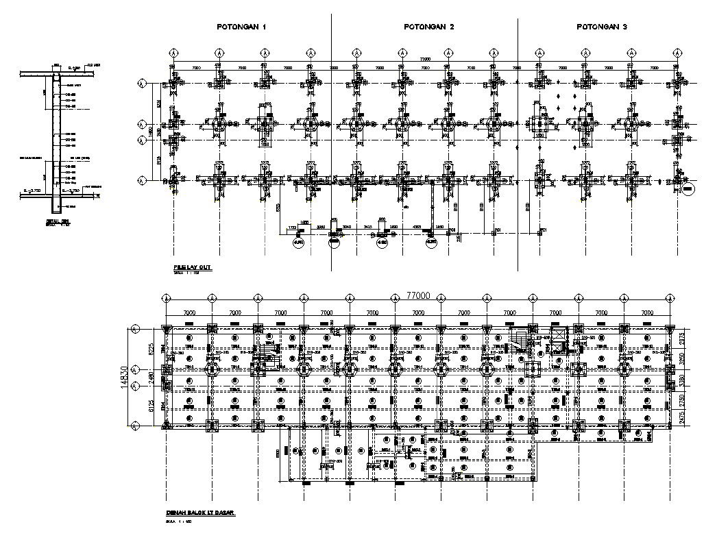 Basement Pile Cap and Column Footing AutoCAD DWG Plan