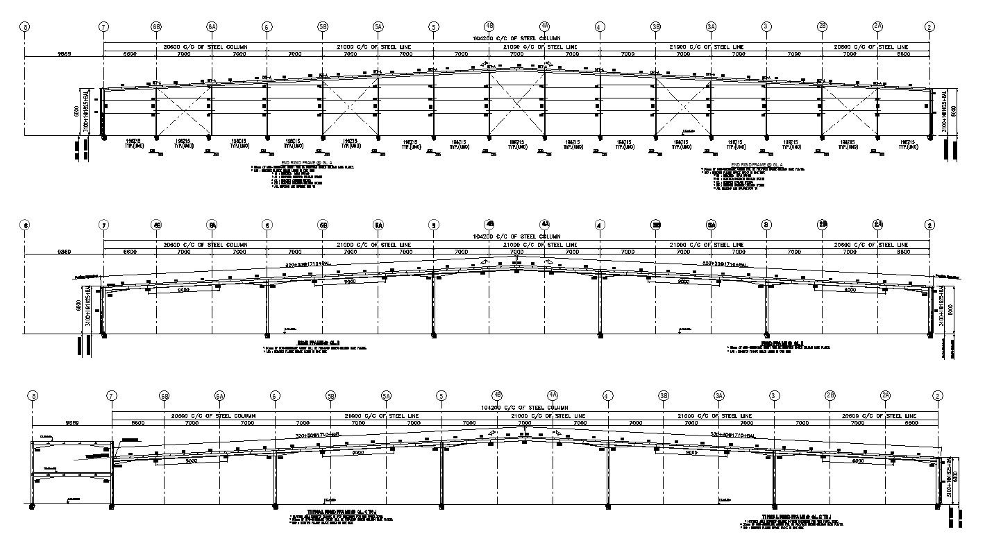Typical Rigid Frame layout details are given in AutoCAD 2D drawing. In a rigid frame layout, the primary load-bearing structure consists of rigid frames, which are composed of columns and beams interconnected to form a stable framework. This type of layout is used in industrial, commercial, and residential buildings. For more detailed knowledge and information download the 2D AutoCAD file.
