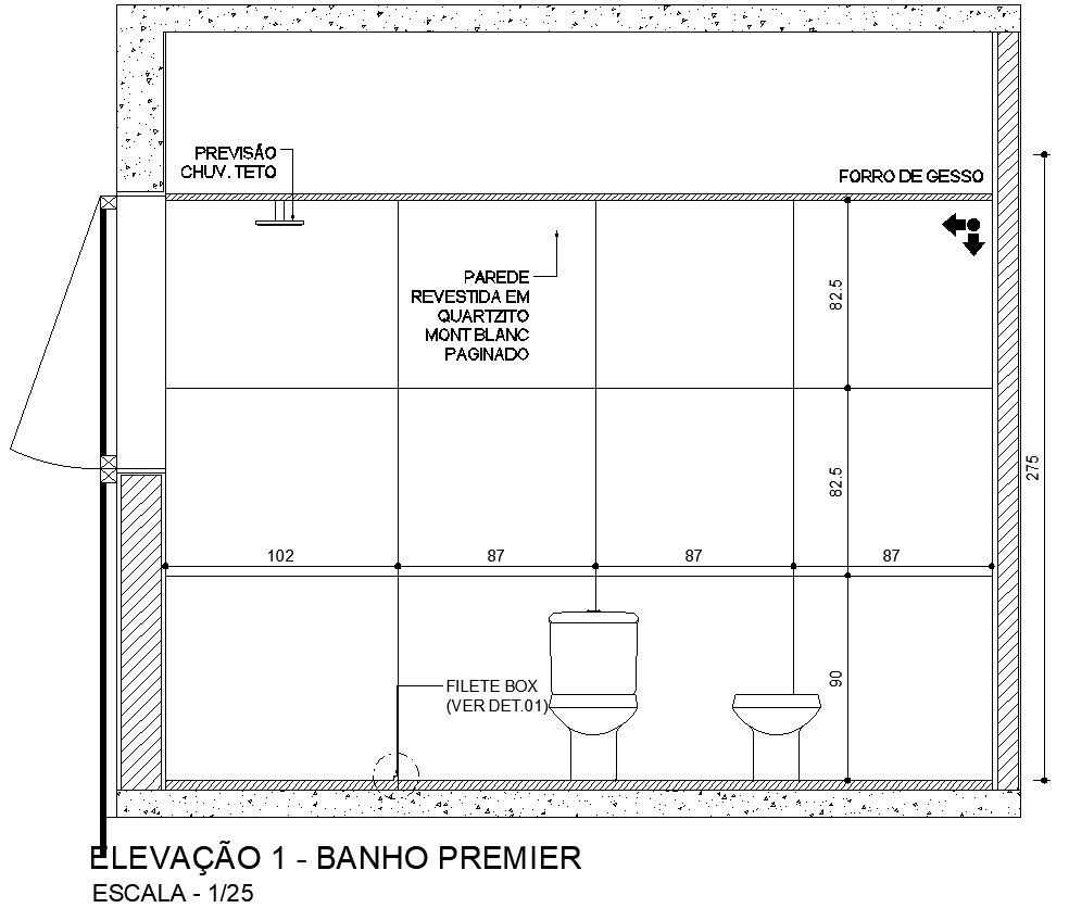 ELEVATION 1 of the PREMIER BATHROOM design is given in AutoCAD 2D drawing, CAD file, dwg file