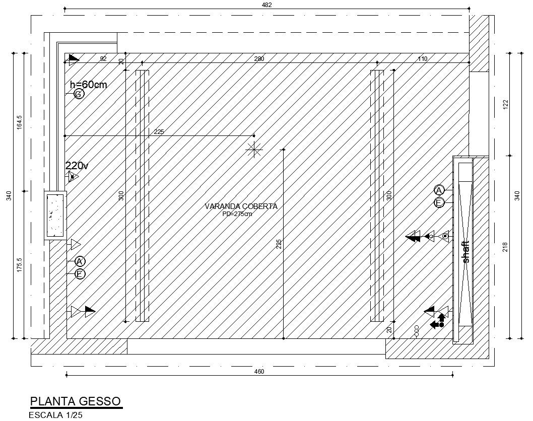 Plastering details of the ground floor of the apartment are given in AutoCAD 2D drawing. H=60cm, 220v lights, and other dimension details are mentioned in this plan. For more knowledge and detailed information download the AutoCAD 2D dwg file.