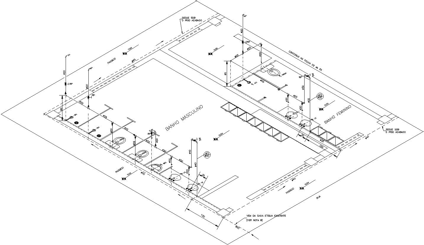 Isometric design with sanitary detail of water line layout plan given in this AutoCAD 2D file. Plumbing fixtures and sanitary elements include in the design. These may include sinks, toilets, showers, bathtubs, faucets, and drainage systems. Use straight lines to represent walls, and include openings where the fixtures will be placed. For more Knowledge and details information download the AutoCAD drawing file.