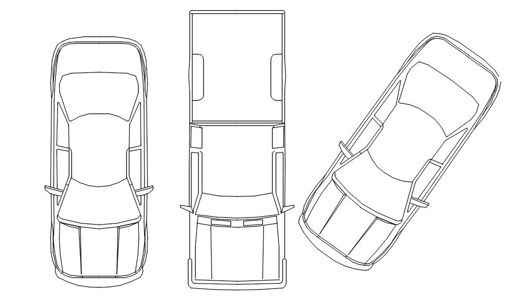 3D Car Design AutoCAD Drawing shows the design of the car from the upper dimension.