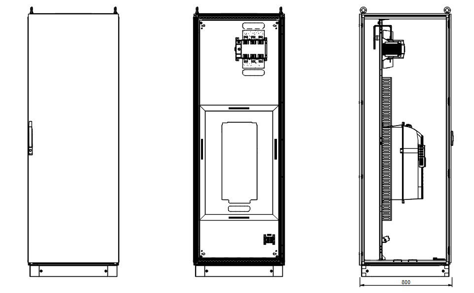Electric Board shows the elevation of the board from the front, side, and top. Also, it is showing, the wire details on the board.